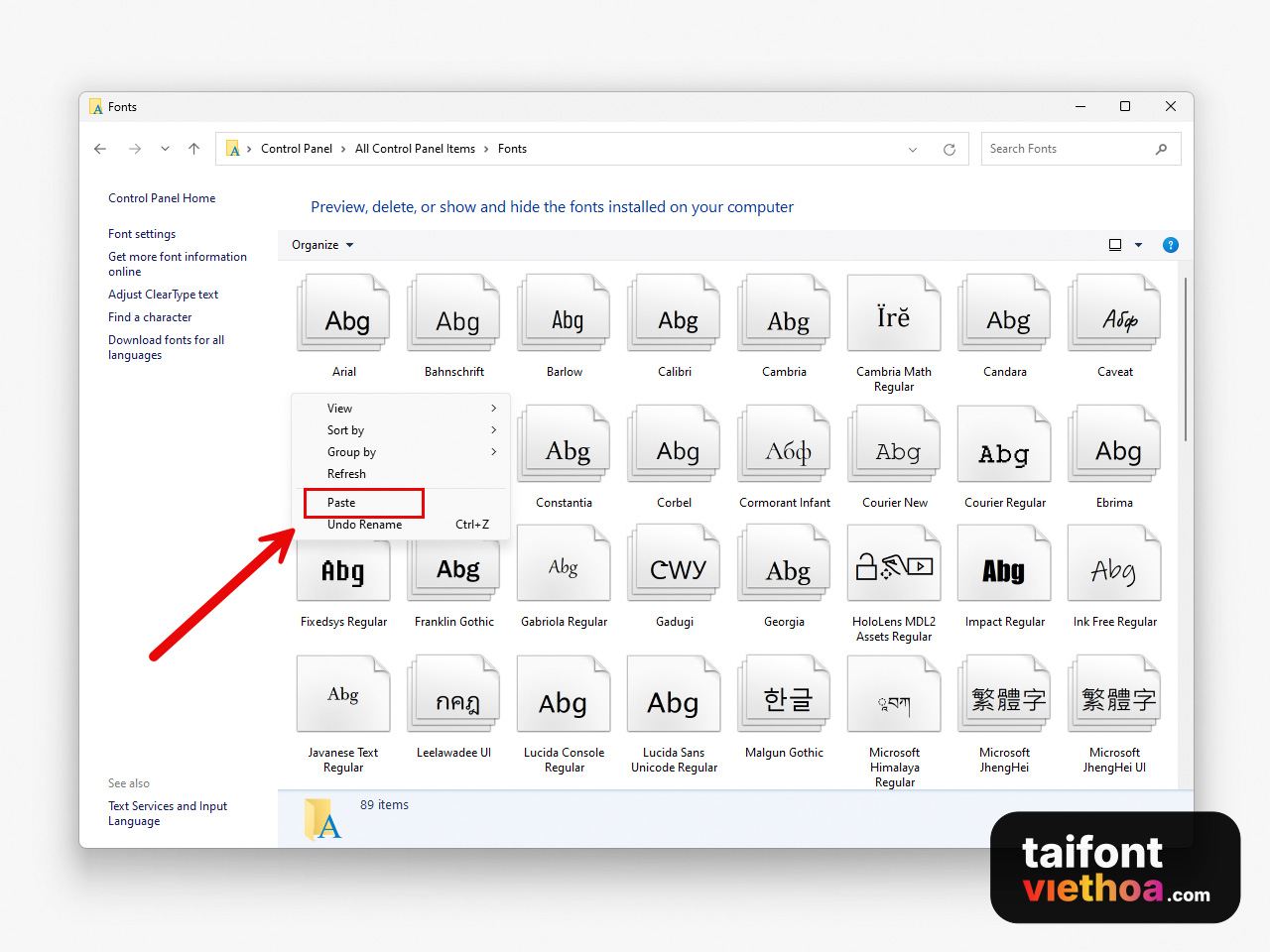 Cài font chữ qua Control Panel (Windows)